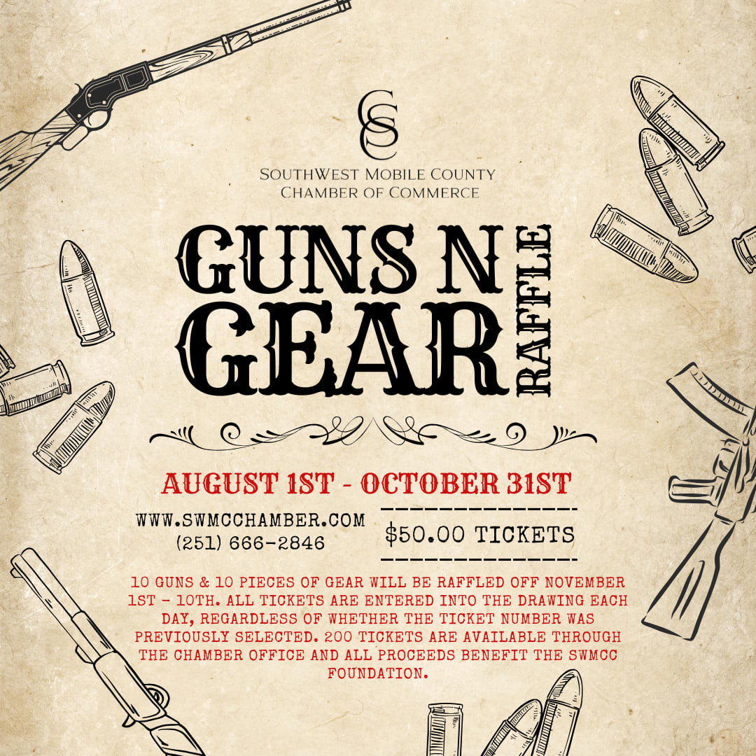 Ten guns and ten pieces of gear will then be raffled off November 1st through November 10th. Winners will be selected through a digital drawing software and announced at 10:00 am each day. All tickets are entered into the drawing each day, regardless of whether the ticket number was previously selected. This means that one ticket has the opportunity to win up to ten times. There is a limit of 200 tickets that will be sold through the Chamber Office.